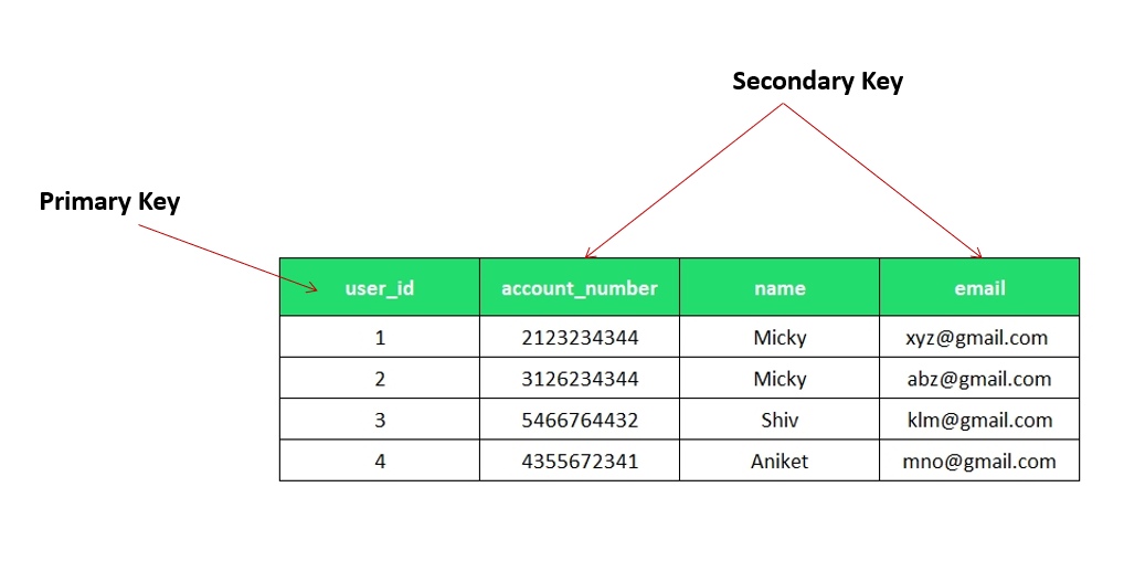 At a school, each student has a unique Student ID as their primary key. However, when teachers need to quickly look up student records, they often search by email address or phone number, as students may not remember their Student ID.