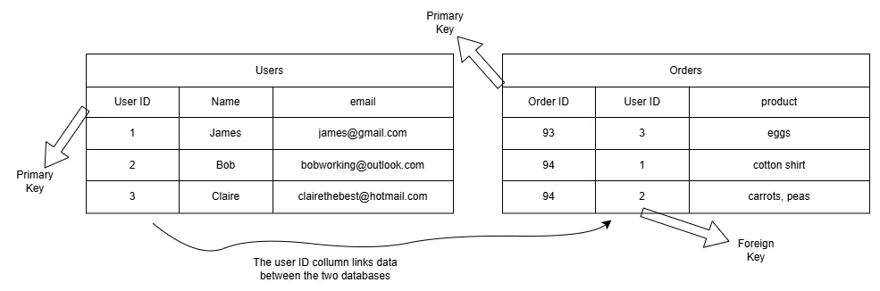 To keep things organised, a relational database creates separate tables for each different type of entity. For example, you might have one table for customers, another for orders, and another for products. Each table holds information related to that specific entity, like a customer’s name, an order’s date, or a product’s price.